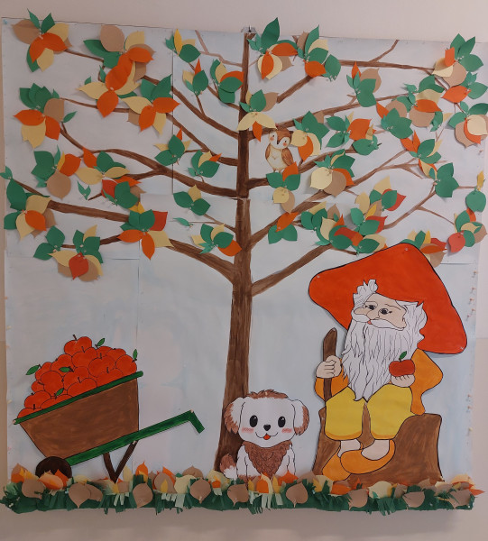 Zbieranie padajúcich listov a upratovanie v záhrade.