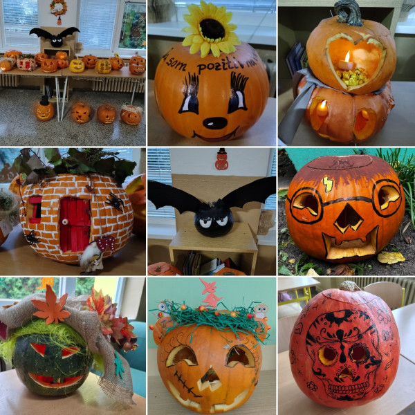 Všetky tekvičky, ktoré vyzdobili naše deti, boli nádherné, no na fotku sa nezmestili všetky. Posielame aspoň nejaké.
